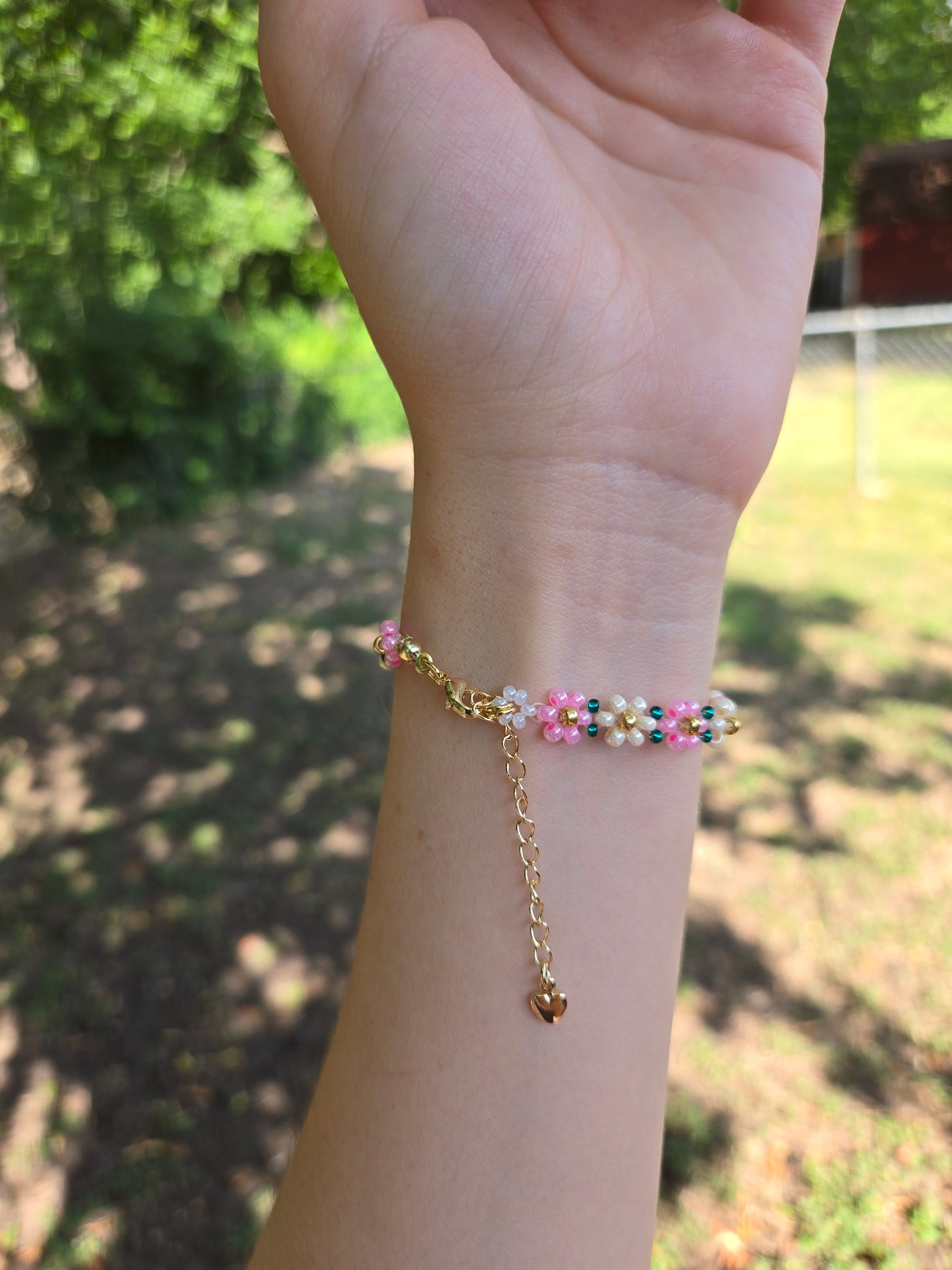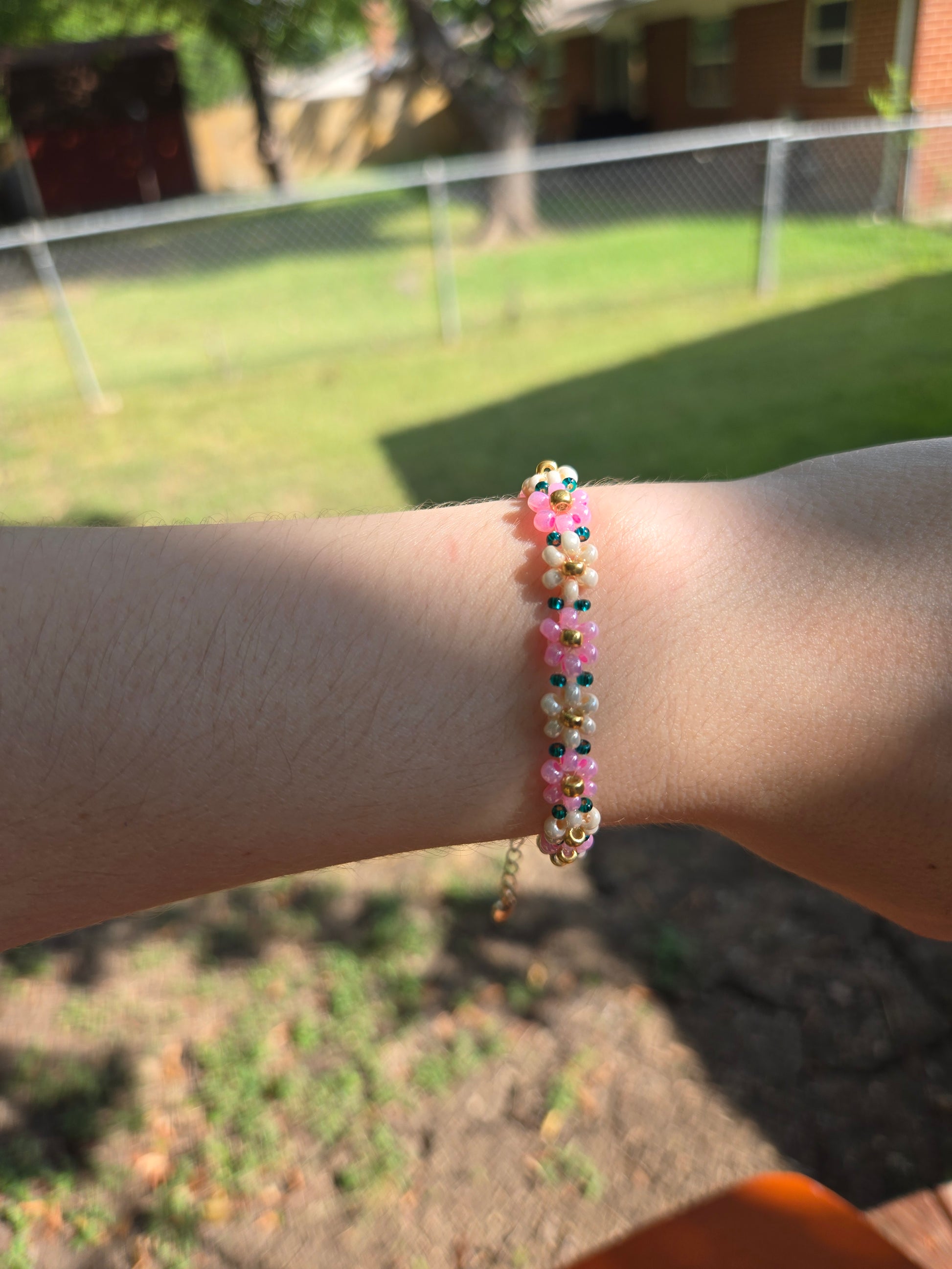 Pink and green Daisy bracelet